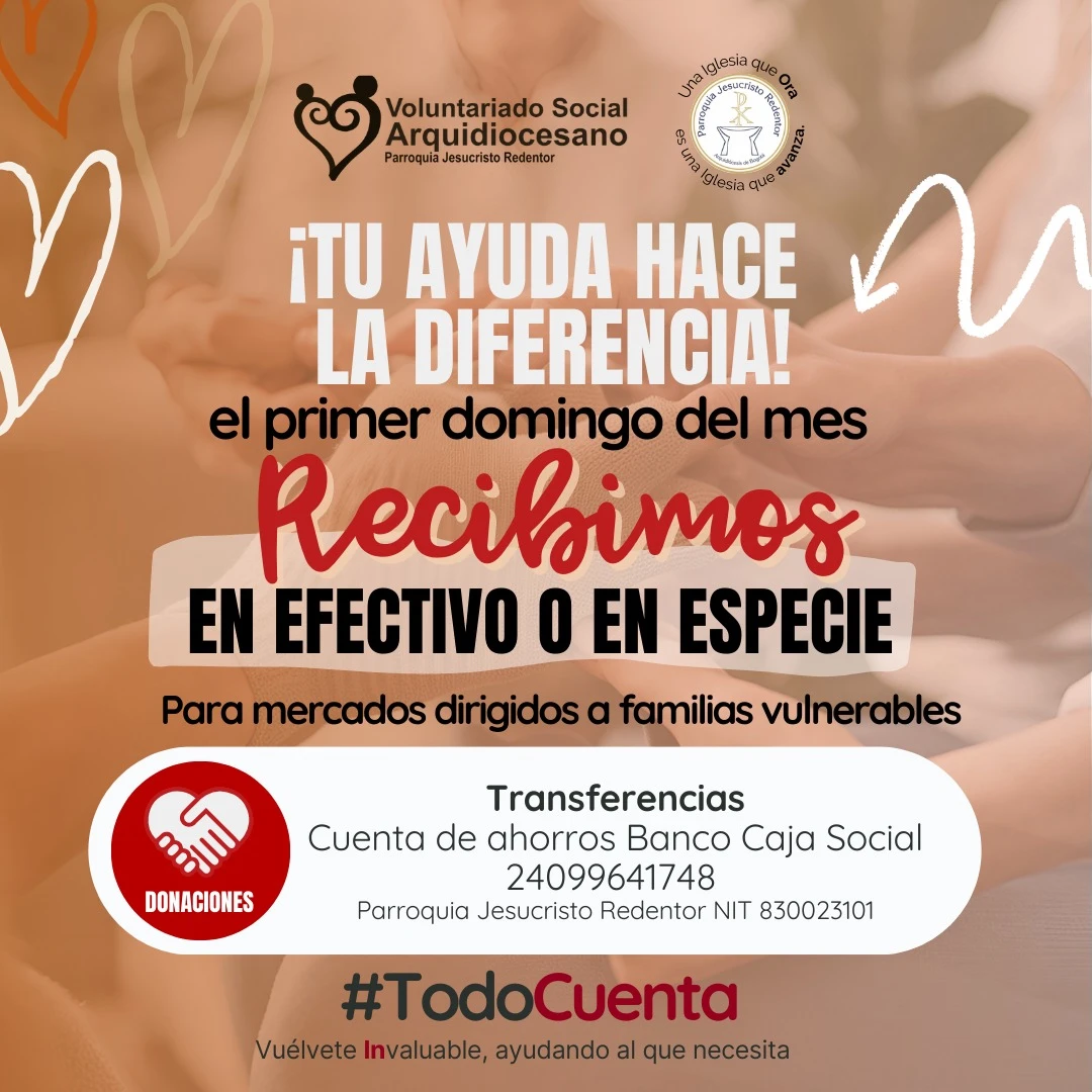 Recuerda que el primer domingo del mes RECIBIMOS TU AYUDA en Efectivo o en especie.